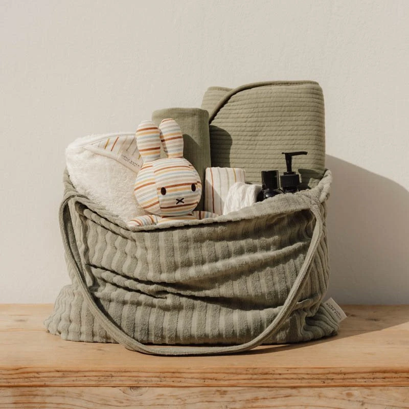 You can’t go without! A mom bag is the ultimate bag for carrying along all the things you need for taking care of your baby or toddler, in style. There’s plenty of room for nappies, baby wipes, a drinking bottle, a fresh set of clean clothes, and so much more. The simple, yet practical, design of the bag allows it to fit around the stroller keeping your hands free to look after your little one. The mom bag is made from soft jacquard terry fabric and comes in different colours.